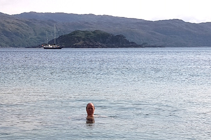 Schwimmen im klaren Wasser des Loch Coruisk auf Skye